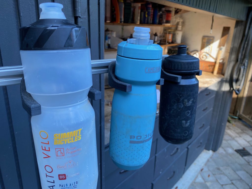 Bottle Grab is designed to hand off water bottles and musettes to riders in a race. Bottles and musettes are suspended at a height suitable for hand off for riders of all heights. The bottle holders work for all standard diameter cycling bottles with a notched neck, or in other words for any bottle that fits in a bottle cage that has a notched neck. The bottle holders are designed to support any bottle length or weight. Simply slide the bottle neck into the arms of the bottle holder, and it’s ready for hand off. The bottle holders are currently 3D printed with a composite carbon fiber and ASA material designed for outdoor use and impact resistance, meaning they will hold up to UV exposure, rain, and wear and tear.